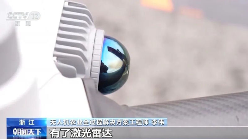 無人機(jī)農(nóng)業(yè)全過程解決方案工程師 李偉:這個就是我們新的激光雷達(dá),它讓整個飛機(jī)變得更加聰明、更加智慧、更加智能。我們田間的障礙物很多很復(fù)雜的,有了激光雷達(dá),它對0.5毫米的障礙物都可以檢測到,就像一個“二郎神”的眼睛一樣,看得更遠(yuǎn),看得更清。