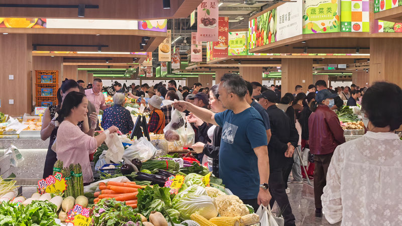 4月26日,在一片鑼鼓聲中,由浙農(nóng)市集湖州公司負(fù)責(zé)運(yùn)營的安市集農(nóng)貿(mào)市場正式開業(yè),現(xiàn)場人頭攢動,熱鬧非凡。據(jù)市場AI客流分析系統(tǒng)顯示,當(dāng)日流量超萬人次。